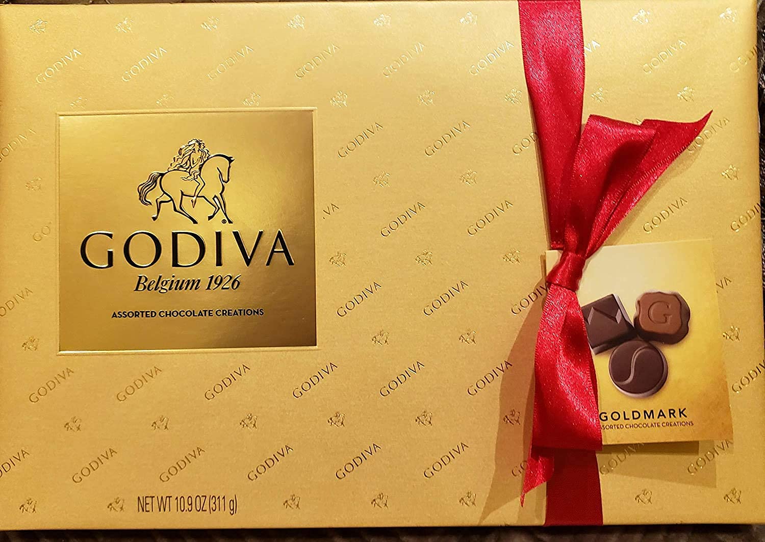 About this Item – Since 1926, Godiva Chocolatier has been making the finest chocolate. Godiva’s legendary heritage of quality craftsmanship, combined with creatively modernized techniques and recipes, guarantees that every piece of Godiva will spark joy. With just one bite, you’ll experience Godiva’s deliciously rich chocolate, complex and layered and sure to indulge and delight all five of your senses. – This Goldmark chocolate collection features 27 exquisite pieces in dark chocolate, milk chocolate, and white chocolate with the finest fillings, including heavenly hazelnut pralin, refreshing raspberry, sweet white chocolate ganache, luscious caramel, and more. – Flavors:Milk Chocolate Pecan Caramel Duet – Dark Chocolate Eclipse – Dark Chocolate Coconut – Dark Chocolate Raspberry Velvet – Milk Chocolate Hazelnut Heaven – Milk Chocolate Creme Puff – White Chocolate Snowflakes – Milk Chocolate Almond Caramel – Dark Chocolate Ganache Bliss – Creme Brulee Truffle – Dark Lava Cake Truffle – Milk Chocolate Ganache BlissIncludesPackaged in a beautiful gold box with red snap bow and hang tag of chocolates inside. – Each box contains 1 tray of 27 pieces of chocolate – Net weight of each box is 10.9oz (311 grams).